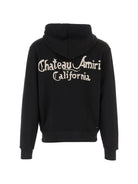 Elevate your casual wardrobe with the MA Chateau Zip Hoodie from AMIRI. This premium black hoodie features a full front zipper closure, adjustable drawstring hood, and signature rose-embroidered Chateau Amiri California logo on the chest.
