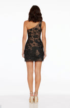The Maddie is an alluring one-shoulder dress, with a flattering fitted mini skirt. Made from a beautiful heavy lace fabric.