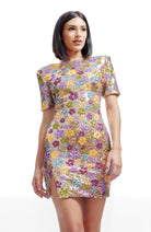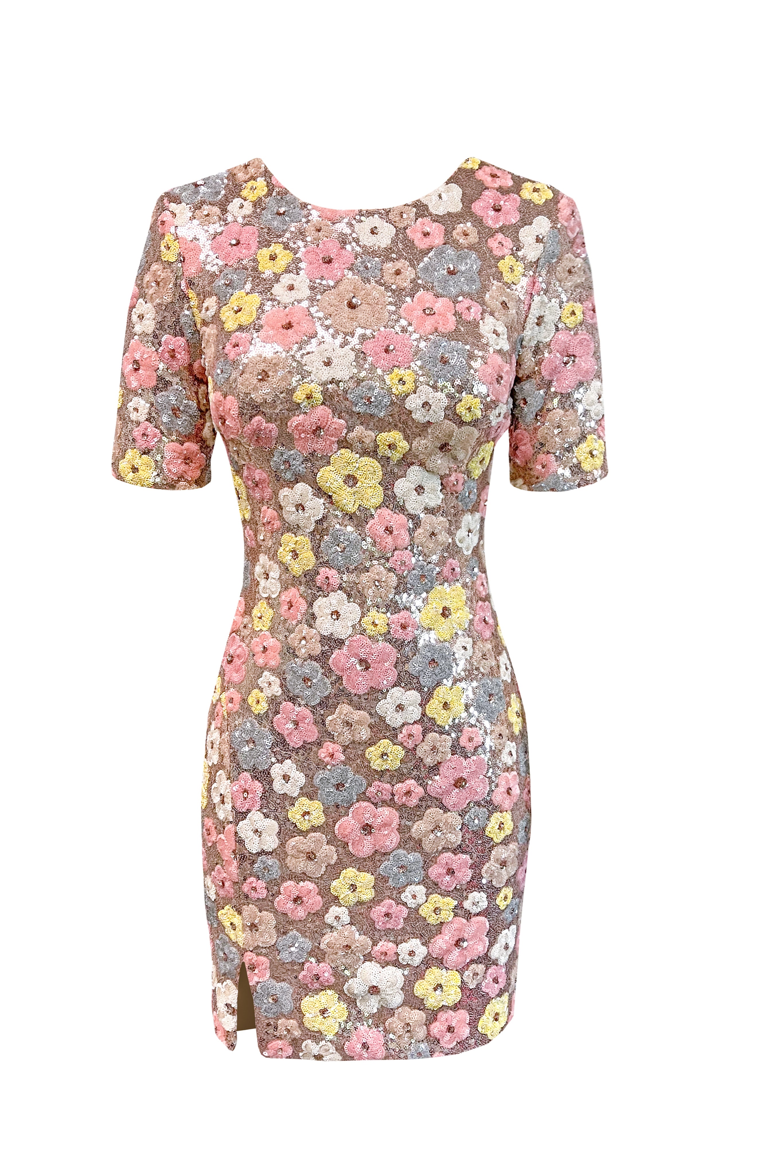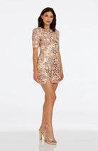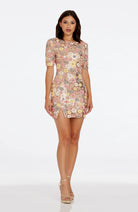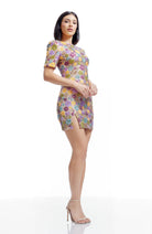 Expertly crafted with short sleeves, a round neckline, and a front side slit, this bodycon mini dress is a must-have for any wardrobe.