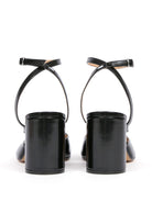 THE CYLINDRICAL HEEL AND ADJUSTABLE ANKLE STRAP BALANCE ELEGANCE AND BOLD CHARACTER, WHILE THE FOUR STITCHES AT THE BACK STAND AS A DISCREET YET UNMISTAKABLE SIGNATURE.
