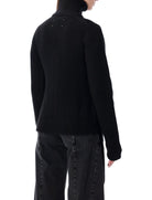 MAISON MARGIELA WOOL RIBBED ZIP-UP HIGH-NECK CARDIGAN