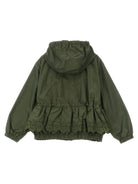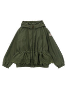 Introducing the 'Manolya' jacket from Moncler Enfant, a sophisticated water-repellent rainwear piece that combines functionality with refined style. This charming olive-green anorak features delicate tonal floral embroidery that adds a touch of elegance to its sporty silhouette.