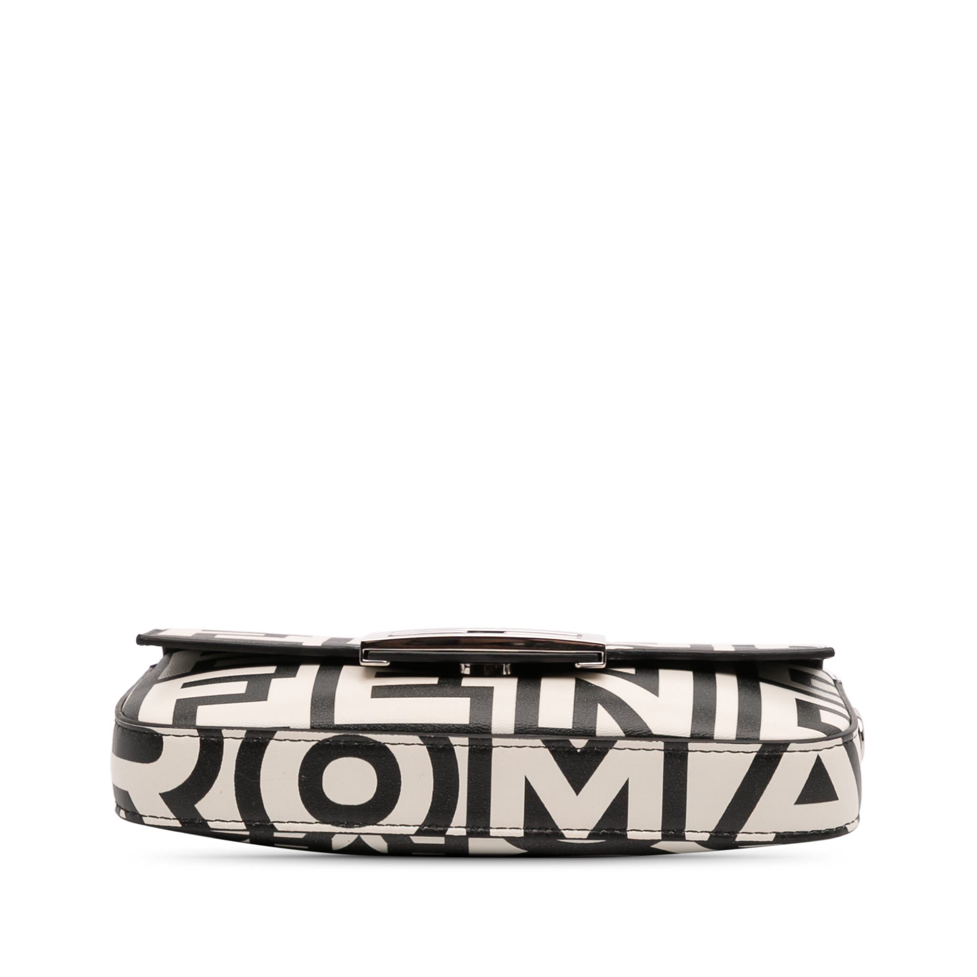 This satchel features a printed nappa leather body, a flat leather top handle, a detachable flat leather strap, a front flap with magnetic snap closure, and an interior slip pockets.