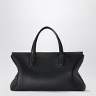 Crafted from supple black textured calf leather, this sophisticated satchel features two flat handles for effortless carrying and a layered structure that adds architectural interest. The concealed top zip closure ensures your essentials remain secure, while the smooth nappa lining with a folded upper edge speaks to The Row's commitment to impeccable craftsmanship.