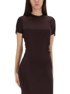 The rich, deep brown hue makes this dress incredibly versatile—style it with heels and statement jewelry for an evening out, or pair it with ankle boots and a leather jacket for a chic daytime look. The fluid fabric drapes beautifully, creating a streamlined shape that's both timeless and modern.