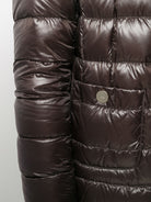 BROWN GOOSE DOWN-FEATHER DOWN BLEND QUILTED FRONT ZIP FASTENING HIGH NECK TWO FRONT PATCH POCKETS MID-LENGTH