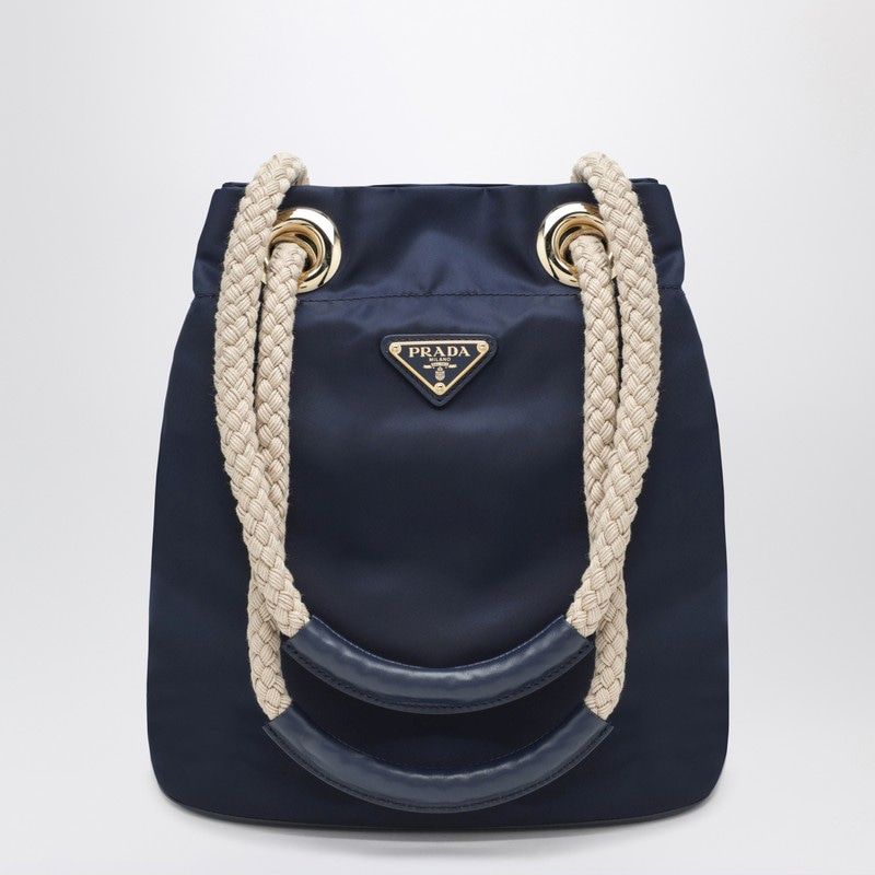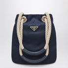 Elevate your everyday style with the Mariner Small Bucket Bag from Prada, crafted in luxurious Baltic blue Re-Nylon. This sophisticated bucket bag features distinctive sliding rope handles that add a nautical-inspired touch to its contemporary silhouette.