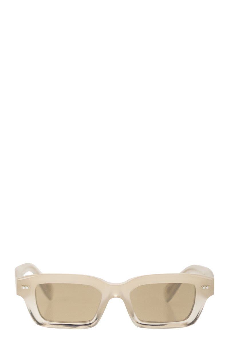 STRONG LINES AND A SCULPTURAL PRESENCE DEFINE THE BOLD SPIRIT OF THE MARLA SUNGLASSES, HANDMADE IN JAPAN. THE ACETATE FRAME, WITH ITS RECTANGULAR SILHOUETTE, IS CRAFTED USING A HOLLOWING TECHNIQUE THAT ADDS VOLUME TO THE STRUCTURE WHILE KEEPING IT LIGHTWEIGHT. ON THE FRONT, LASER-CUT HINGES ELEGANTLY REINTERPRET THE ICONIC LINES OF THE HERALDIC CREST, WHILE THE TEMPLES FEATURE EXQUISITE MICRO-DETAILS SUCH AS LOGOS ENGRAVED ON THE CORE, FLUSH-MOUNTED PINS AND CUSTOMISED HINGES. INSIDE THE TEMPLE, A SUBTLE LASER ENGRAVING MARKS THE MODEL WITH THE “MARLA” SIGNATURE. THE GLASSES ARE PART OF THE ‘ICONIC MERIDIAN’ LINE, INSPIRED BY THE ICONIC SYMBOL OF BRUNELLO CUCINELLI'S HISTORY AND PHILOSOPHY: THE HERALDIC LOGO IS REINTERPRETED IN DETAILS, WORKMANSHIP AND DISTINCTIVE ELEMENTS THAT UNITE THE DIFFERENT MODELS. LIGHT SHAPES GEOMETRIC ELEMENTS AT ITS MAXIMUM INTENSITY, LIKE A SUNDIAL SCULPTED BY THE SUN. THE FRAME IS MADE OF ACETATE, A CLASSIC MATERIAL IN EYEWEAR THAT IS THIN AND LIGHTWEIGHT. THE CRYSTAL SUNGLASSES LENSES OFFER UV PROTECTION. - FRAME SHAPE: RECTANGULAR - ACETATE FRAME - GAUGE: 50 MM; BRIDGE: 19 MM; TEMPLE: 145 MM - CRYSTAL LENSES, BASE 4.25 - LENSES WITH UV PROTECTION - MODEL COMPATIBLE WITH CORRECTIVE LENSES - NON-ADJUSTABLE NOSE PADS - UNIVERSAL FIT - HANDMADE IN JAPAN - EXCLUSIVE PACKAGING DESIGNER ID: 0BC4019S 104053