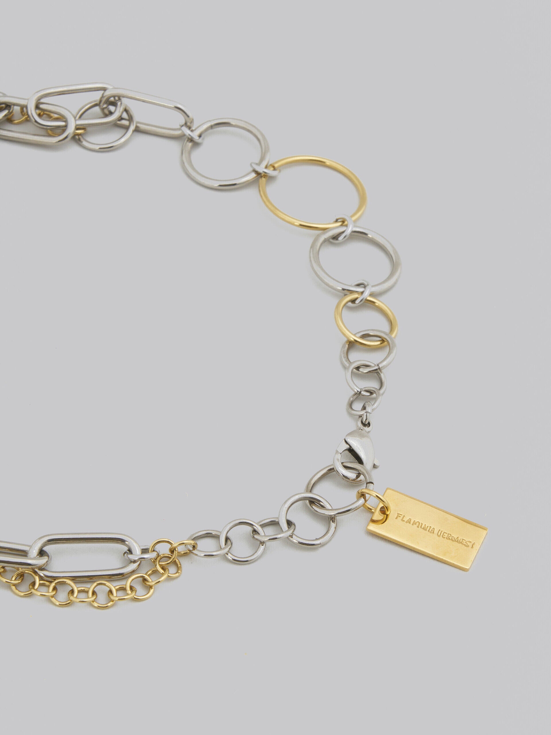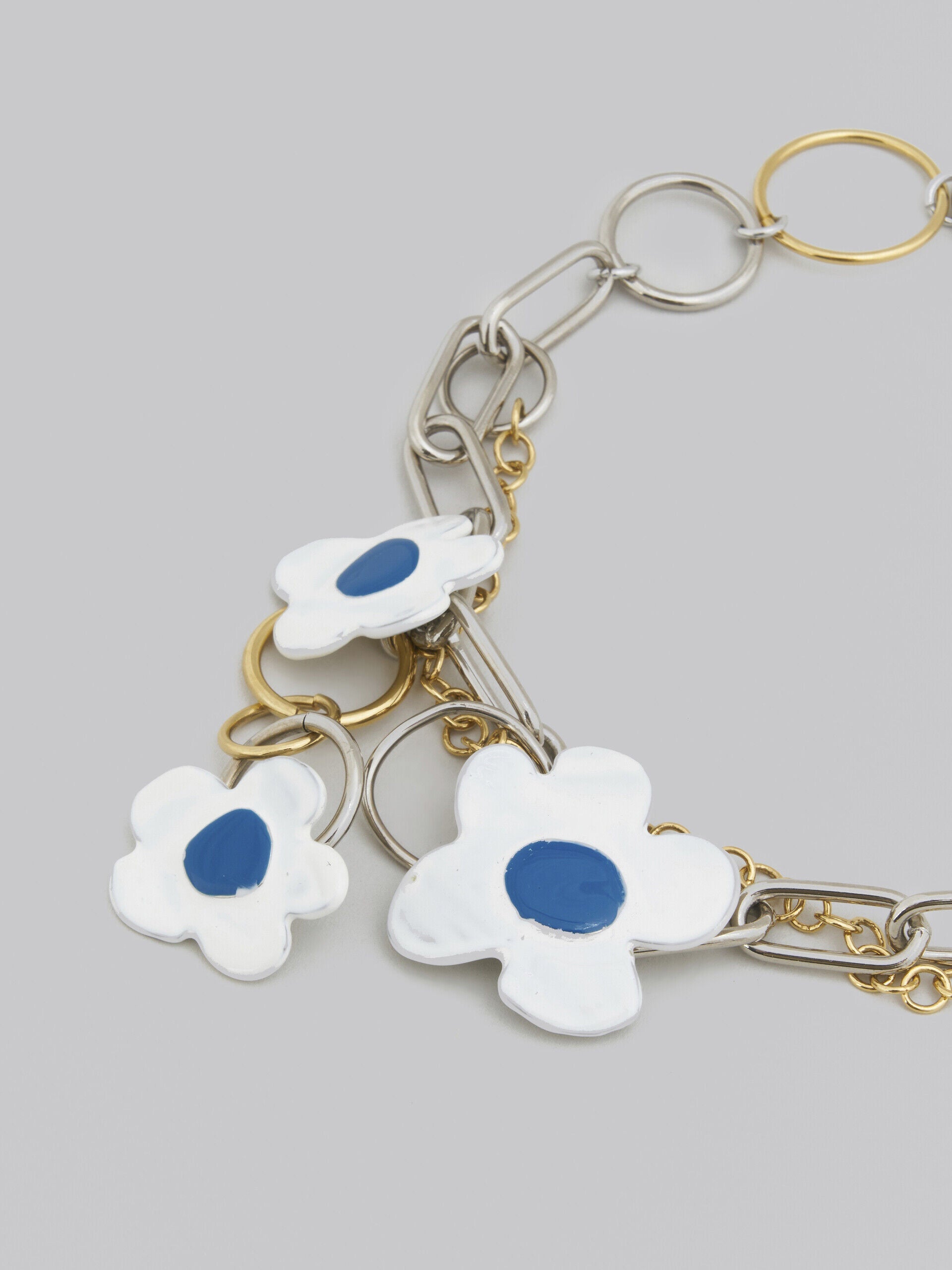 Elevate your accessory game with this stunning MARNI bracelet featuring charming white floral accents with blue centers. This designer piece showcases a sophisticated mixed-chain design in luxe gold-tone metal, creating the perfect balance between playful and refined.
