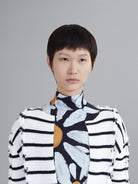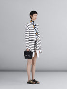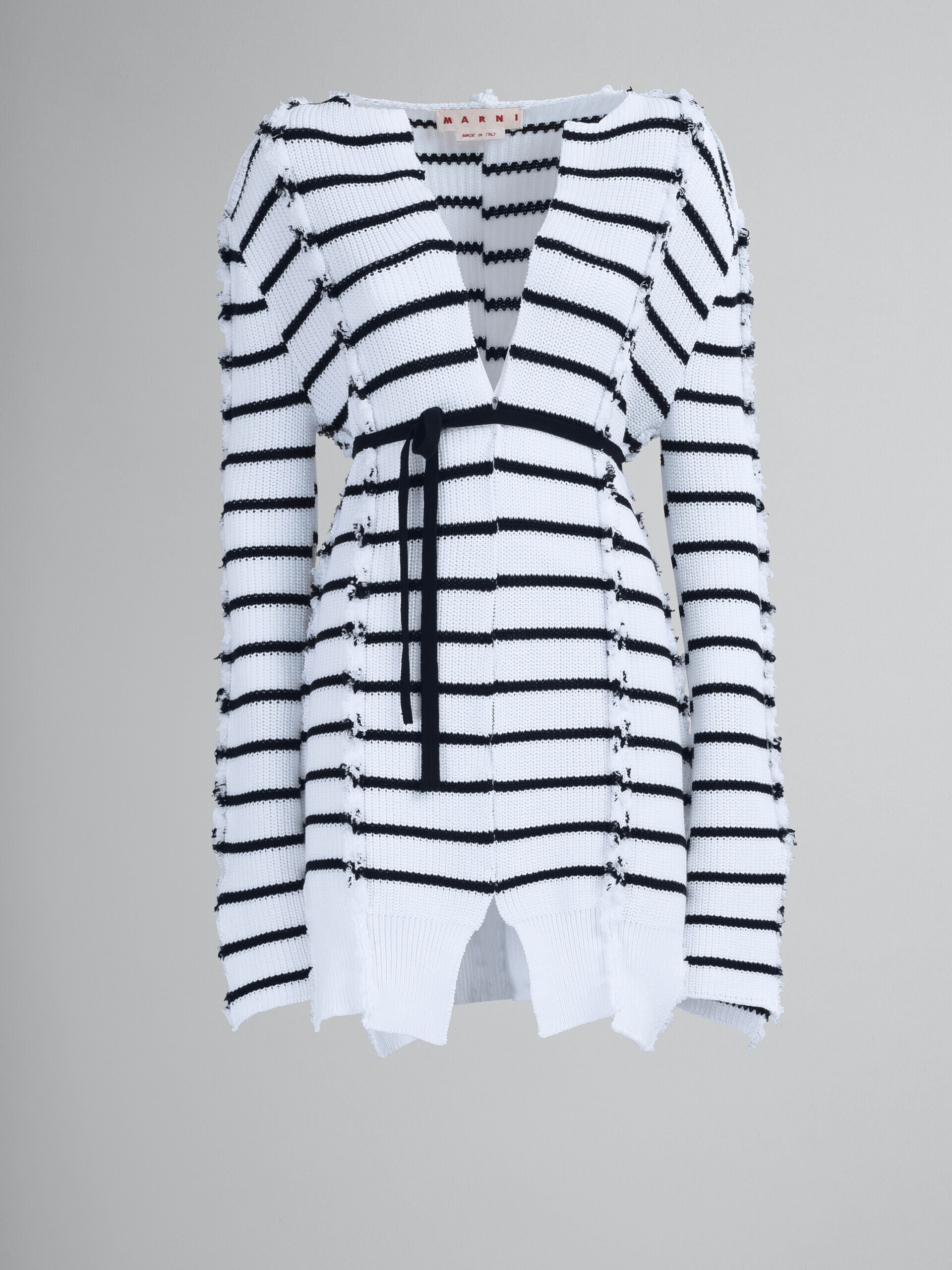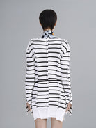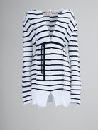 Elevate your everyday wardrobe with this striking striped pullover sweater from MARNI. Featuring a classic black and white horizontal stripe pattern, this contemporary piece showcases the Italian brand's signature modern aesthetic with an unexpected twist at the hem.