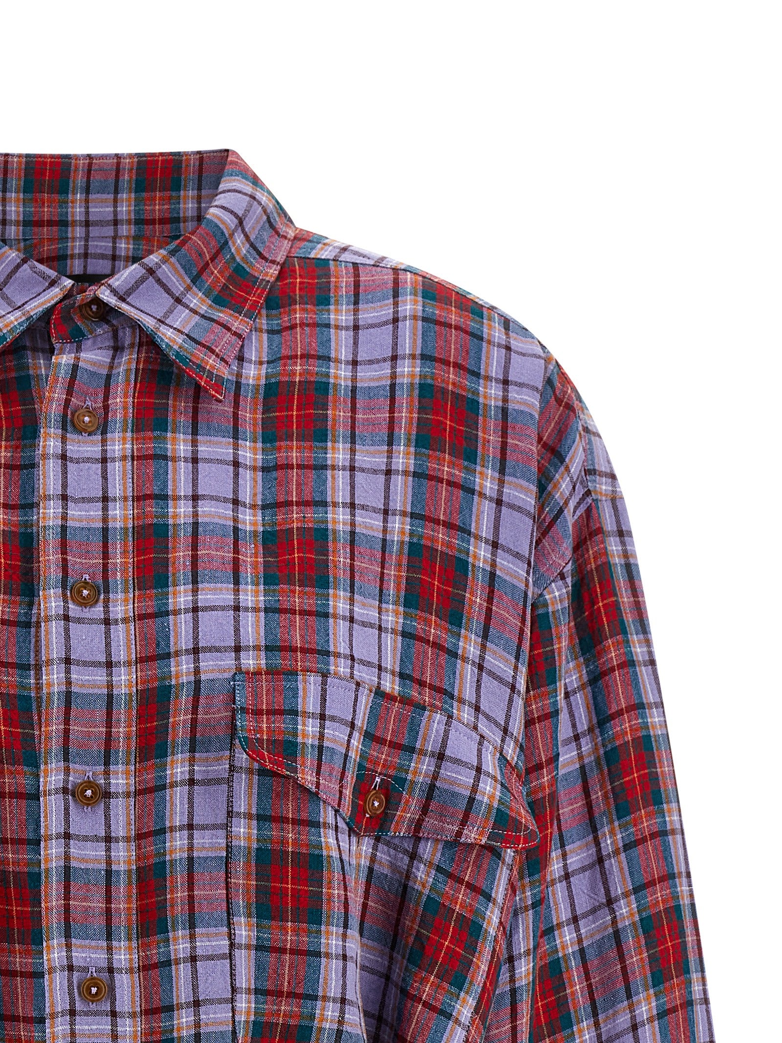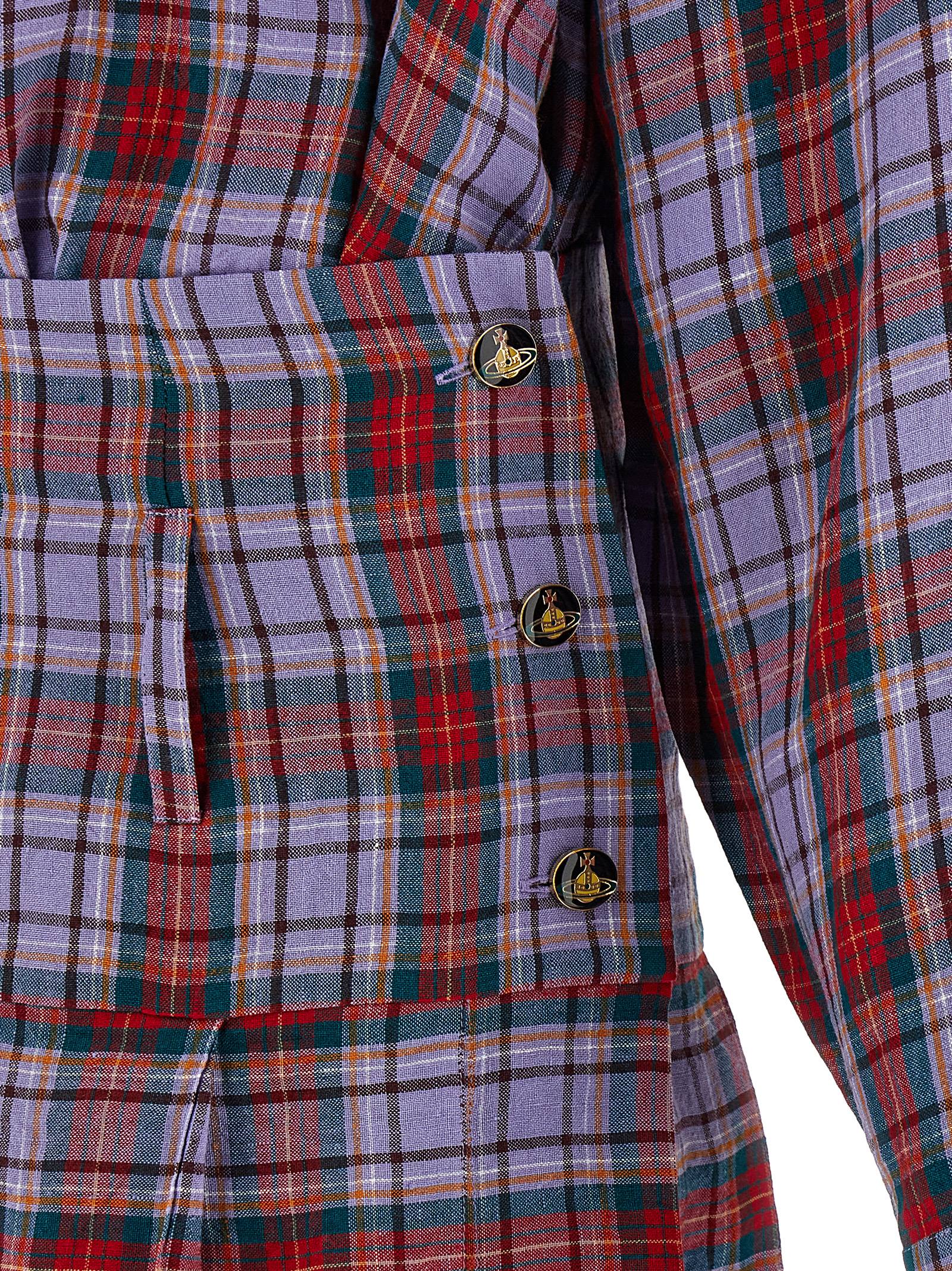Introducing the 'Marta' dress by Vivienne Westwood, a stunning mini dress that reimagines classic shirting with avant-garde flair. Crafted in luxurious check print linen, this chemisier-style piece features a pointed collar, front button closure, and long sleeves with cuffs and a dropped shoulder for effortless sophistication.
