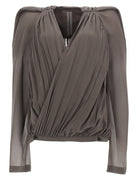 Style it with tailored trousers for a sophisticated evening ensemble, or pair it with denim for an elevated off-duty look. The versatile taupe colorway makes this piece an essential addition to any modern wardrobe, perfect for those who appreciate Rick Owens' signature blend of edge and elegance.
