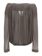 Crafted from 100% silk with cotton lining and made in Italy, this long-sleeve top embodies the perfect blend of comfort and high-fashion aesthetics. The soft, flowing fabric drapes beautifully on the body, creating a flattering and effortlessly chic look.