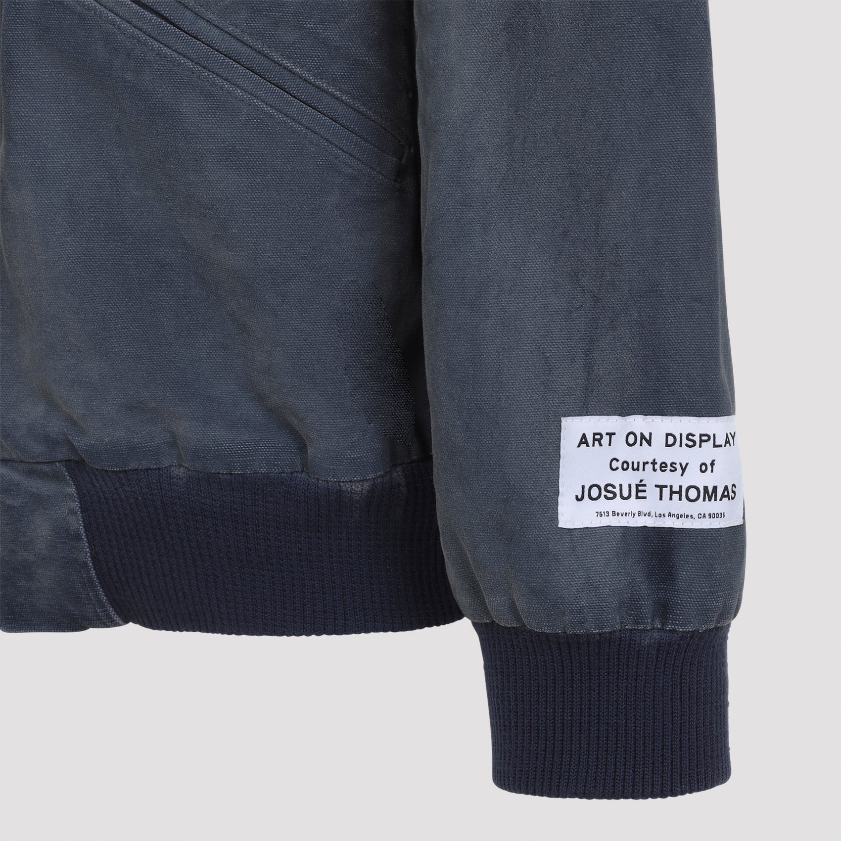 The classic silhouette showcases a zip-front closure, ribbed collar, cuffs, and hem for a timeless look. The blue-gray colorway and vintage mechanic aesthetic make this piece perfect for layering over tees and hoodies.