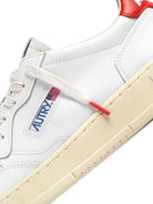 Elevate your sneaker game with the Autry Medalist Low-Tops Leather Sneakers in pristine white. These iconic trainers feature a panelled design with perforated detailing and a signature red heel counter that adds a pop of color to the classic silhouette.