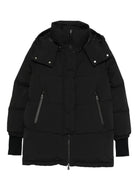 DOWN JACKET IN WATER-REPELLENT FABRIC FOR AN OPAQUE EFFECT AND DOWN FILLING. IN ADDITION TO THE MATT AND SOFT TEXTURE OF THE FABRIC, WHICH GIVES IT A SPORTY TOUCH, THE GARMENT IS ALSO FUNCTIONAL, THANKS TO THE ADJUSTABLE HOOD WITH ELASTIC DRAWSTRING AND ELASTIC INNER CUFFS TO RETAIN WARMTH. IT IS THEREFORE SUITABLE FOR THE CITY AND IDEAL FOR TACKLING THE WINTER SLOPES. - REGULAR FIT - ADJUSTABLE HOOD WITH ELASTIC DRAWSTRING - HIGH COLLAR - ELASTICATED INNER CUFFS WITH THUMB HOLES - WATERPROOF TWO-WAY ZIP FASTENER WITH POLYURETHANE COATING - WATERPROOF ZIPPED WELT POCKETS WITH POLYURETHANE COATING - PERFORMANCE: WATER-REPELLENT, WINDPROOF, LIGHTWEIGHT DESIGNER ID: PI002047D12840 9300