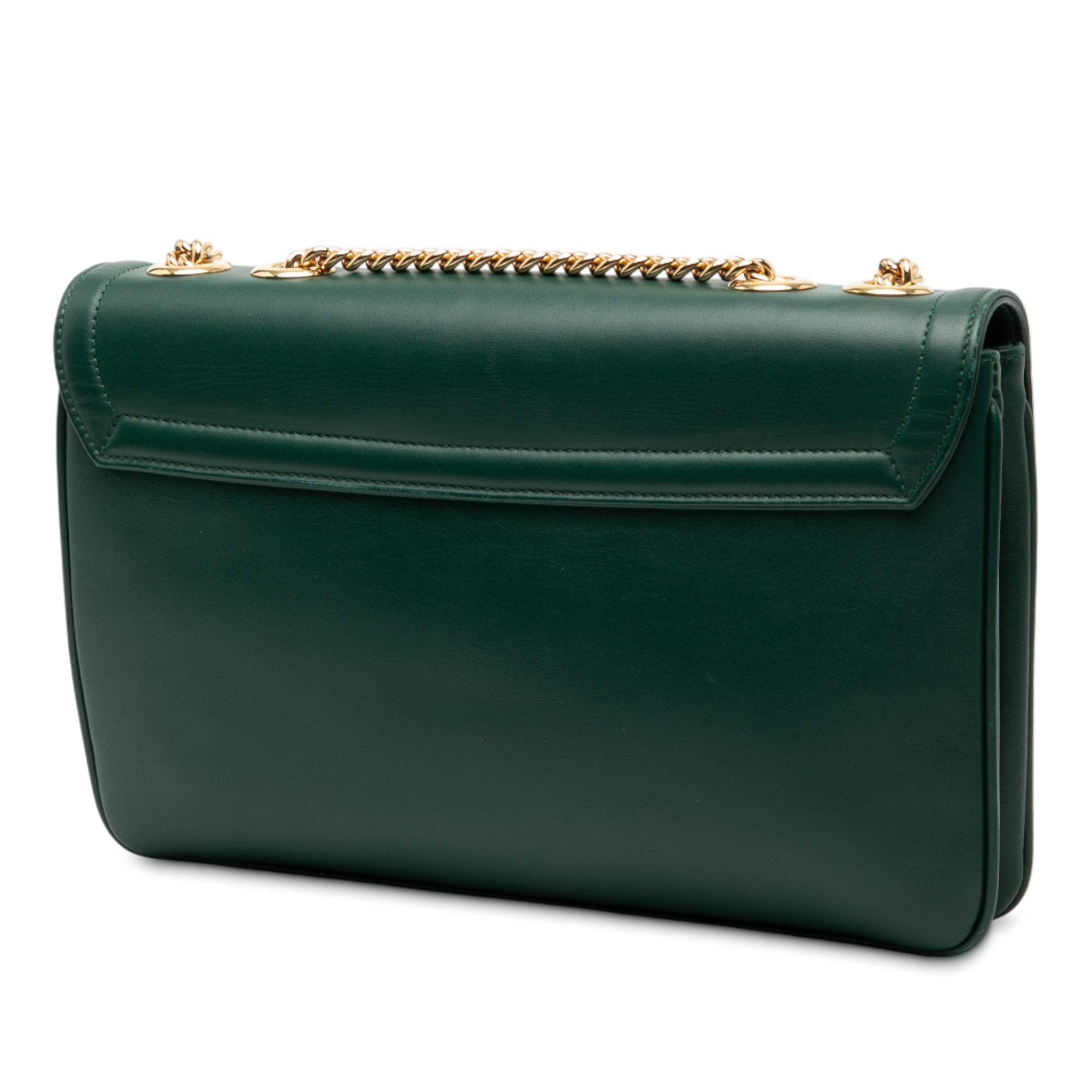 The Gucci Rajah Crossbody is a stunning medium-sized bag that effortlessly combines luxury and functionality. Crafted from supple leather in a rich green hue, this elegant piece features the iconic tiger head embellishment and signature double G hardware in gleaming gold-tone metal.