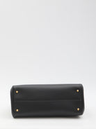 MEDIUM MY SICILY HANDBAG IN BLACK PLONGé CALFSKIN. IT FEATURES A TOP LEATHER HANDLE, FLAP WITH TUCK-IN CLOSURE, GOLD-TONE METAL LOGO PLAQUE ON THE FRONT, KEY HOLDER WITH KEY AND PADLOCK, REMOVABLE AND ADJUSTABLE SHOULDER STRAP, ONE EXTERNAL ZIP POCKET AT THE BACK, MAGNETIC SIDE CLOSURES TO EXPAND THE CAPACITY, A SINGLE INTERIOR COMPARTMENT, AND ONE INTERNAL ZIP POCKET. DUST BAG INCLUDED. ANY IMPERFECTIONS IN THE LEATHER ARE NOT TO BE CONSIDERED MANUFACTURING DEFECTS BUT RATHER A CHARACTERISTIC OF THE MATERIAL.