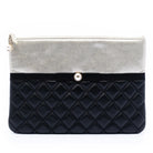 Carry this elegant clutch to elevate any cocktail dress or formal ensemble. The sophisticated metallic and black color-blocking adds a modern edge to the classic Chanel aesthetic.