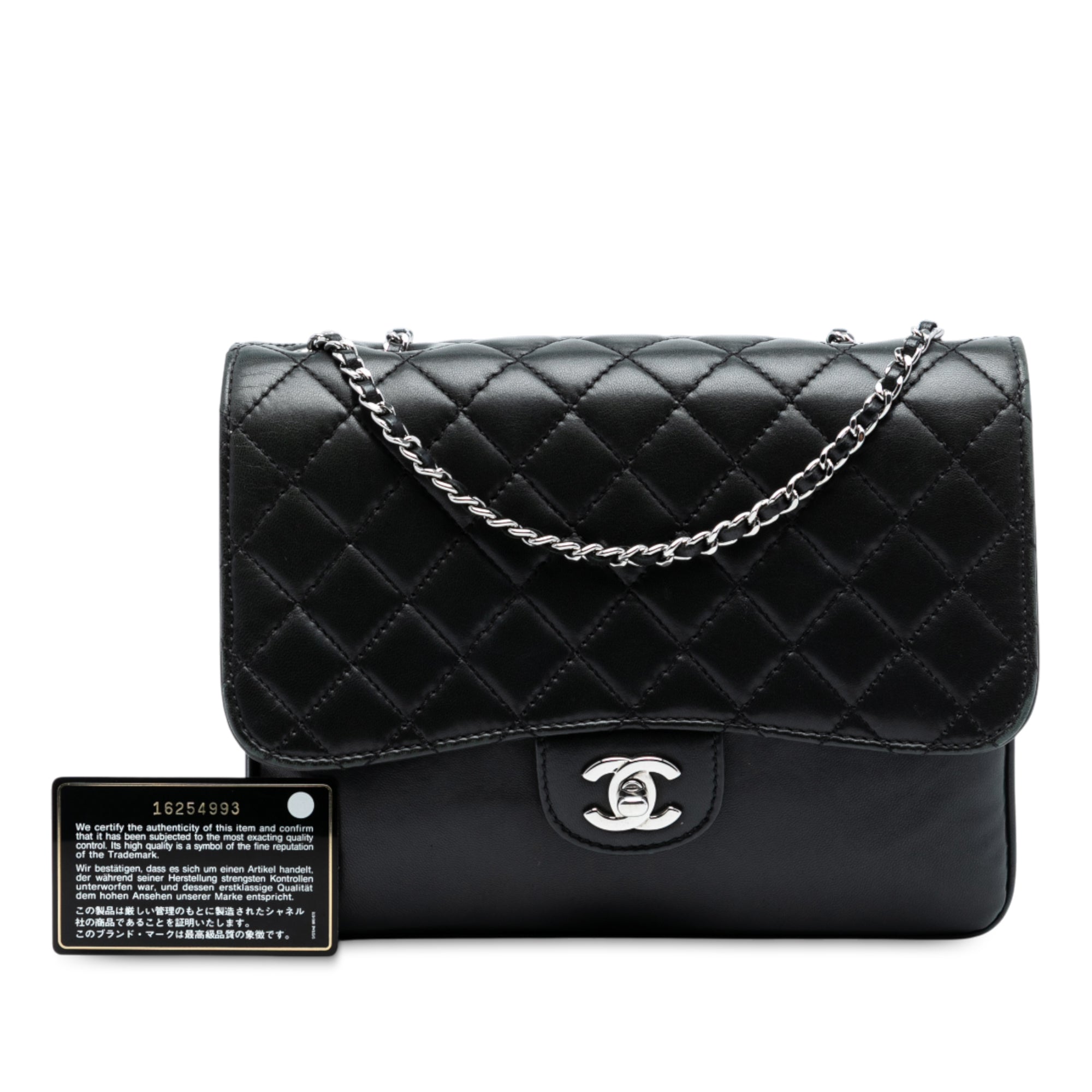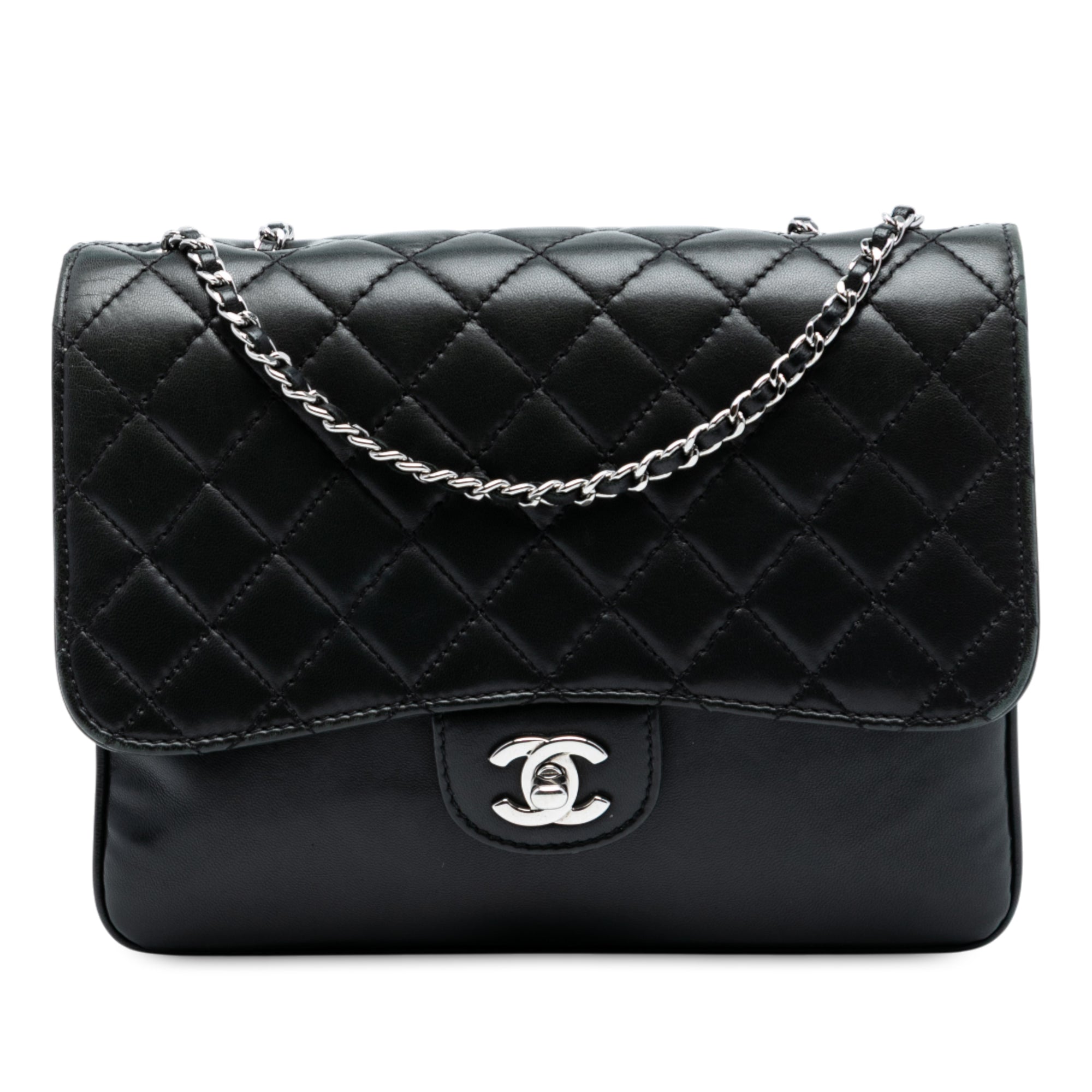 This exquisite Chanel Medium Quilted Lambskin Accordion Flap shoulder bag is the epitome of timeless luxury and sophistication. Crafted from buttery soft quilted lambskin leather, this iconic piece features the signature interwoven leather chain straps and the classic CC turn lock closure that defines Chanel's heritage.
