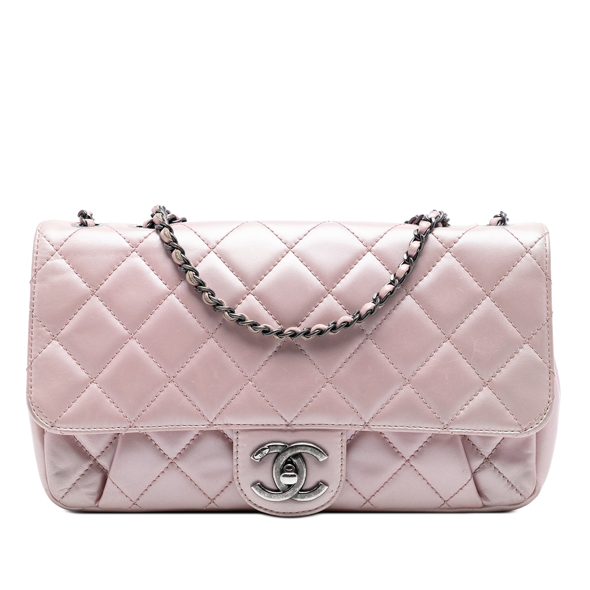 Medium Quilted Metallic Calfskin Coco Pleats Chain Flap