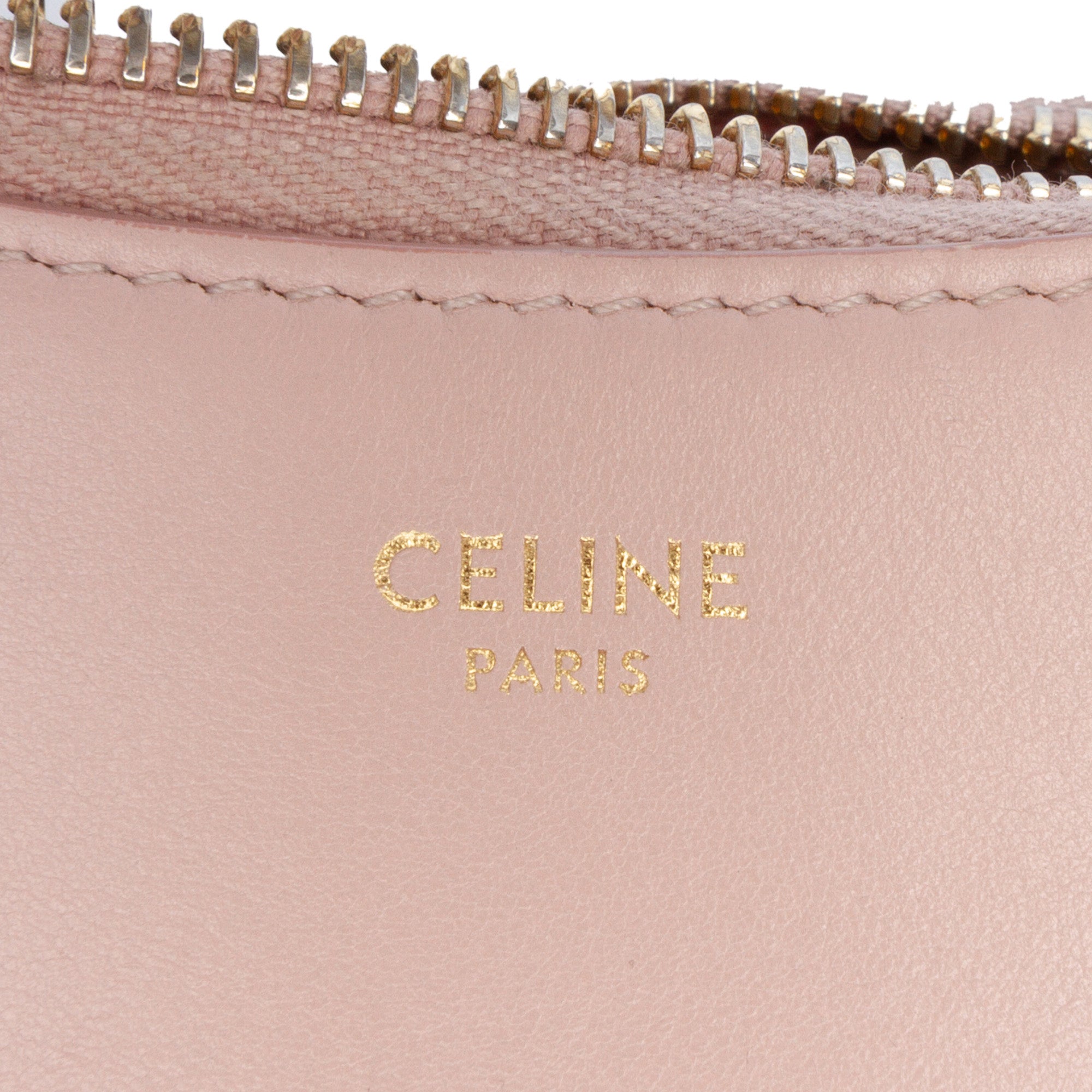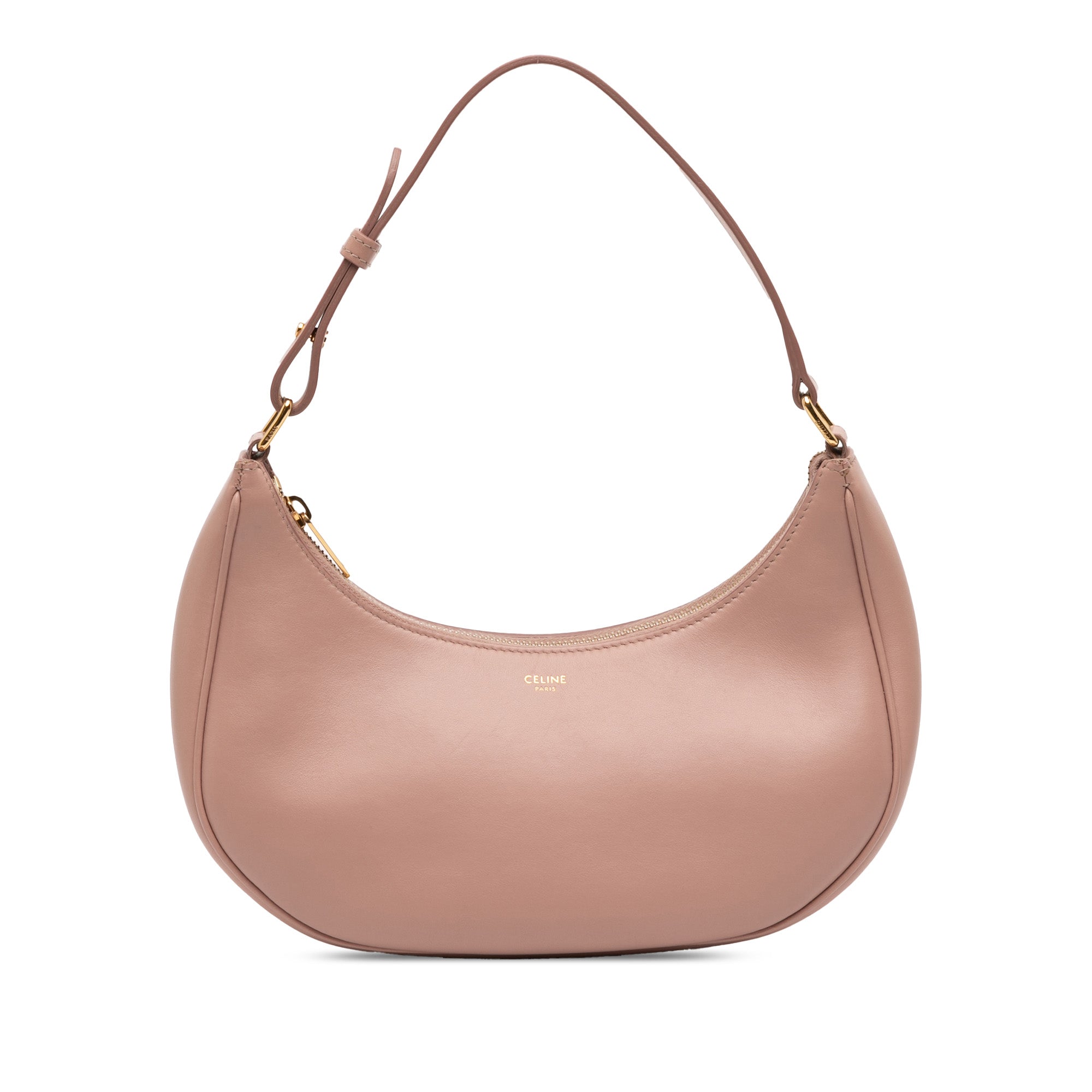 The Ava features a smooth calf leather body, a flat leather strap, a top zip closure, and an interior slip pocket.
