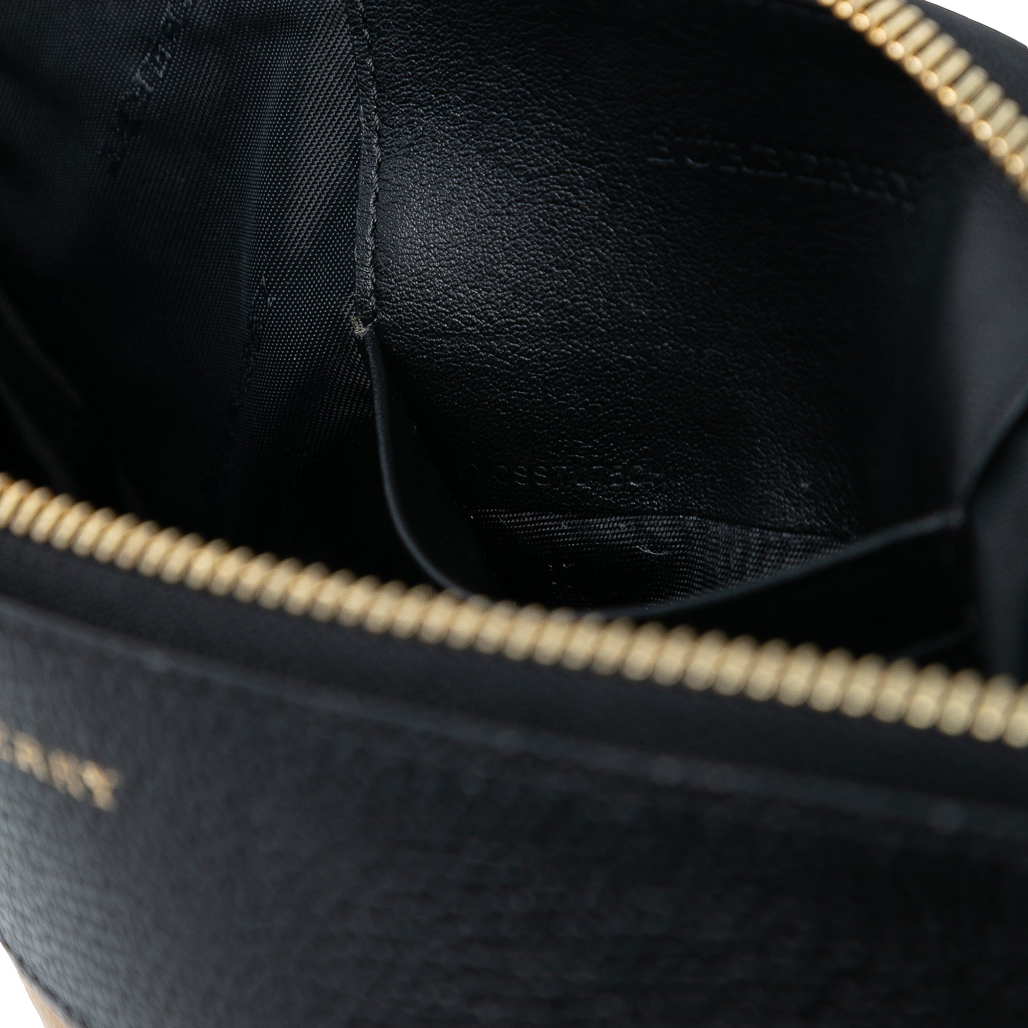 The Peyton crossbody bag features a mega check canvas body with leather trim, a detachable flat leather strap, a top zip closure, and interior slip pockets.