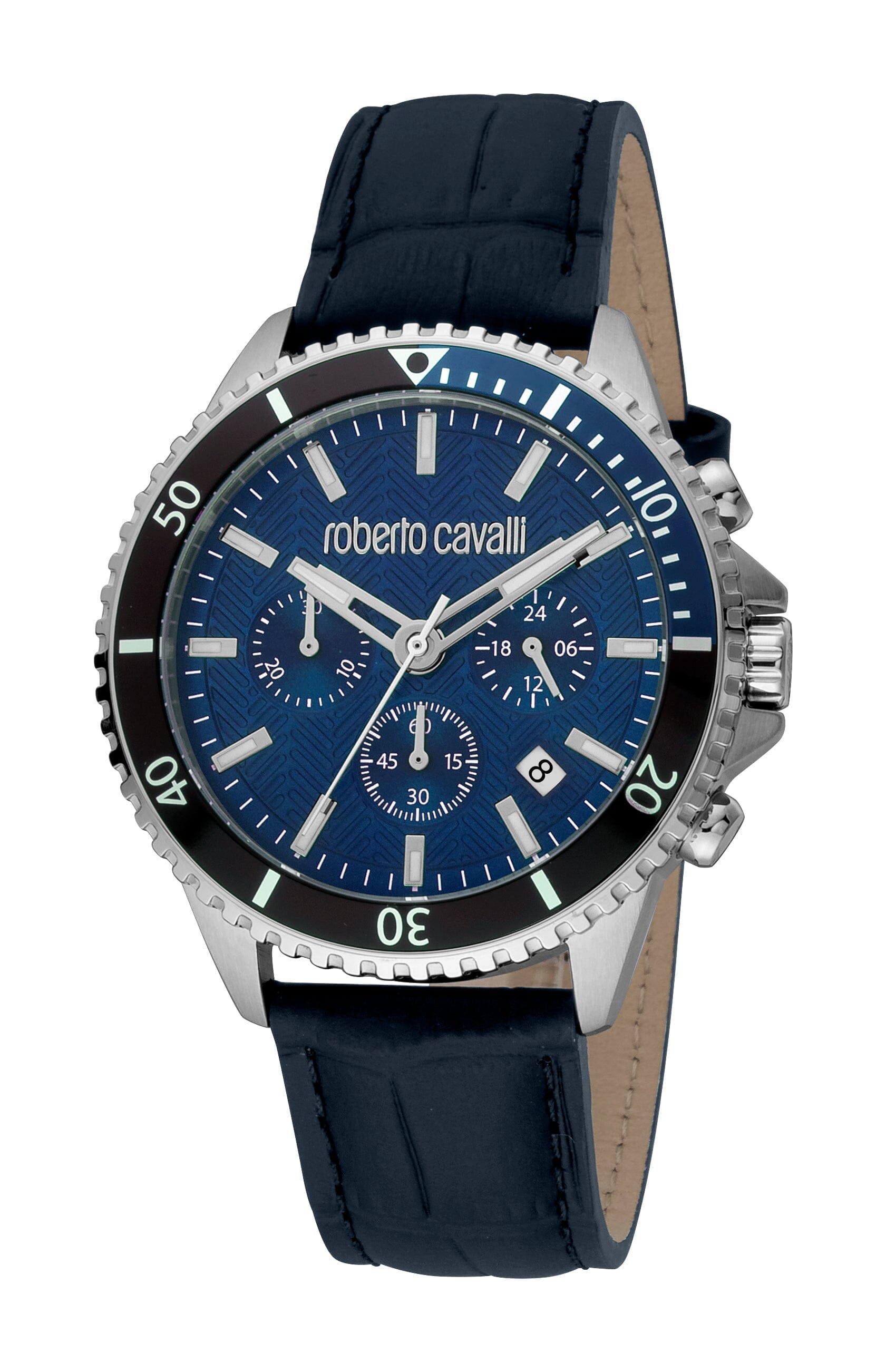Men's Roberto Cavalli Dark Blue Dial Silver Quartz Leather Strap Watch