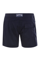 MERISE MEN'S SWIMSUIT FEATURING A SHORT CUT WITH A FLAT WAISTBAND FOR TIMELESS, SOPHISTICATED, RETRO-INSPIRED SHORTS. - SHORT SWIMSUIT WITH FLAT WAISTBAND, VILEBREQUIN LOGO SNAP BUTTON AND TONE-ON-TONE ZIPPER - SLANTED SIDE POCKETS AND BACK POCKET WITH VELCRO CLOSURE - BACK SEAM SHAPE PROVIDES A MORE NATURAL TONE AND CURVE - SHORTER THAN CLASSIC MEN'S SWIM SHORTS - INTEGRAL WATER-RESISTANT MESH LINING (100% POLYAMIDE) - INTERNAL DRAWSTRING FOR A PERFECT FIT DESIGNER ID: MSEC4E01 390