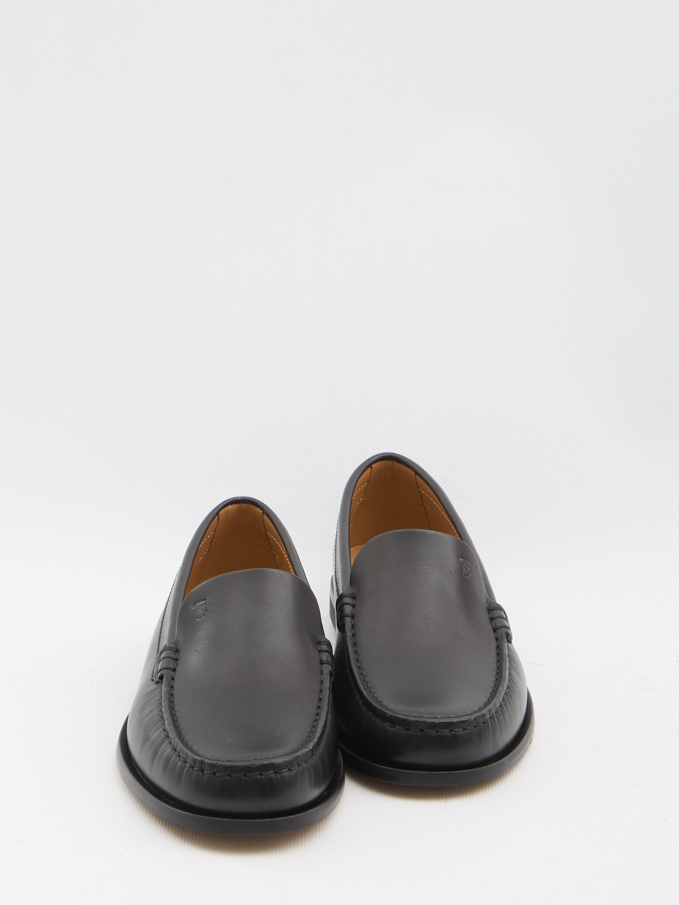 Black calf leather loafers. Featuring a round toe with hand-stitched details, embossed Tod's monogram, metal details on the heel, leather lining and insole, and a leather sole. Dustbag included. Any imperfections in the leather should not be considered manufacturing defects, but rather a characteristic of the material.
