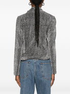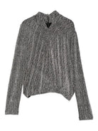 Elevate your wardrobe with this stunning Metallic High-Neck Top from IRO. Crafted with a luxurious grey metallic effect fabric, this sophisticated piece features a chic high neckline and long sleeves for effortless elegance.