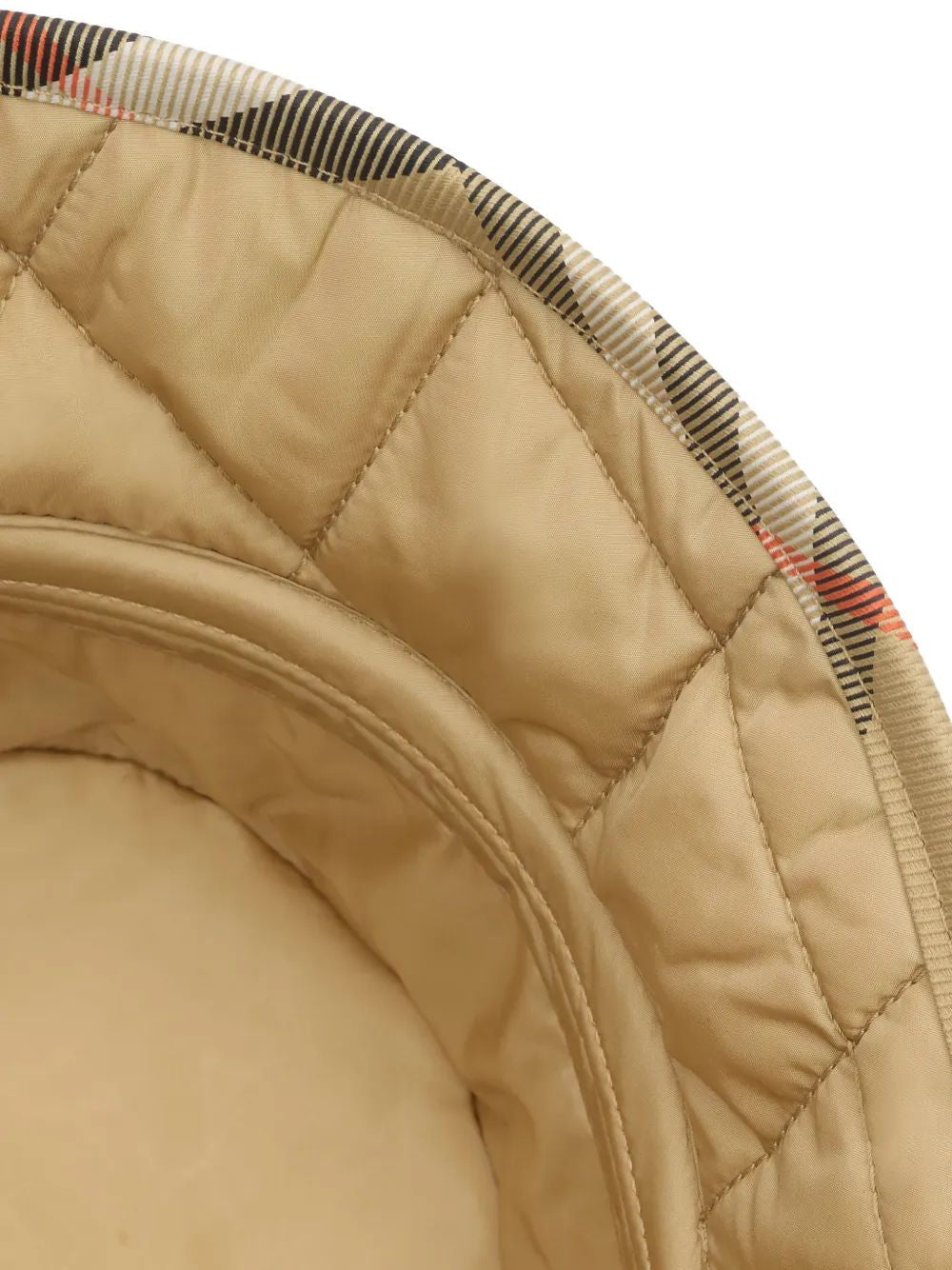 Elevate your accessory game with this iconic Burberry MH Horseshoe Bucket Hat, featuring the brand's signature vintage check pattern in classic beige, black, white, and red.