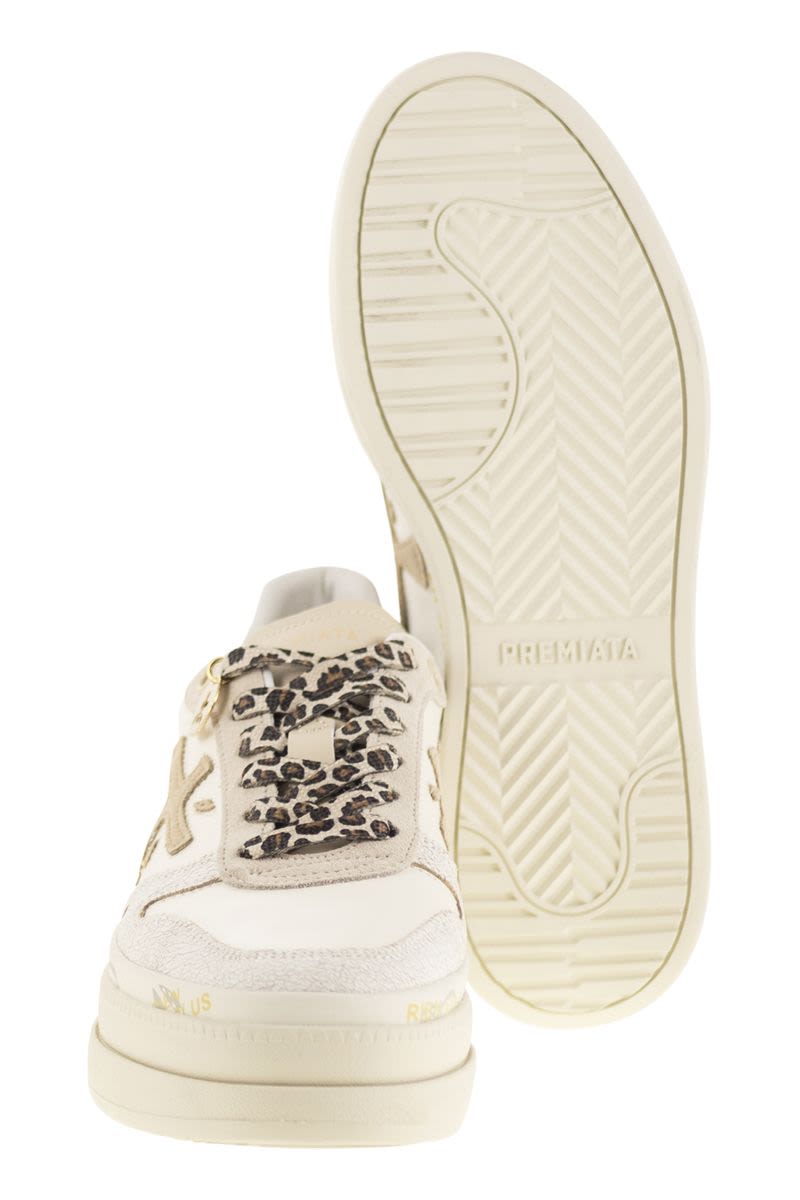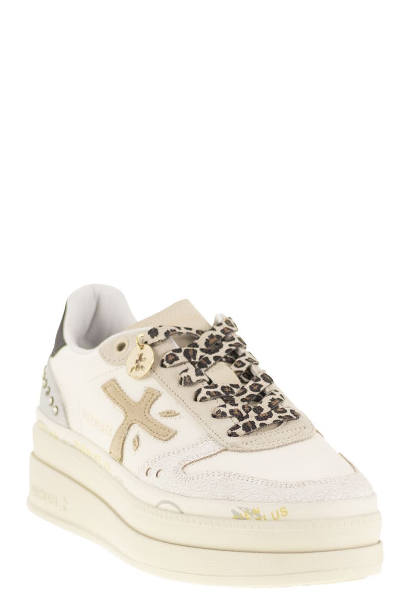 ONE OF PREMIATA'S NEW MUST-HAVES. STYLE REACHES NEW HEIGHTS, COMBINING DESIGNS SUCH AS THE DOUBLE-LAYER PLATFORM SOLE WITH A MIDSOLE EMBELLISHED WITH THE BRAND'S ICONIC STAMPS. - SIDE LOGO - HIGH SOLE - PATTERNED LACES DESIGNER ID: MICOL 7751 SOLE HEIGHT: 5 CM