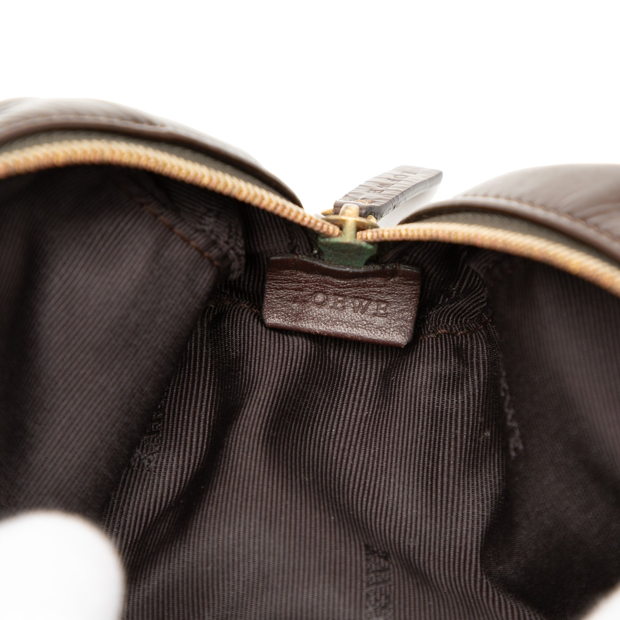 Exterior Back stained with Other. Exterior Bottom Worn. Exterior Bottom stained with Other. Exterior Corners Worn. Exterior Handle Cracked, Creased, Worn. Practical Attachment Rusty/Tarnished, Scratched. Exterior Top Worn. Zipper Rusty/Tarnished, Scratched.