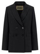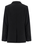 The structured silhouette boasts classic peak lapels, a front button closure, and flap pockets for a polished finish. Slightly padded shoulders and long sleeves create a sophisticated shape, while the back split ensures ease of movement.
