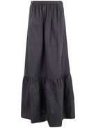 Embrace effortless elegance with this midi skirt from Mantu. Crafted from 100% cotton, this charcoal-hued piece features a comfortable elastic waistband and a relaxed A-line silhouette with charming tiered detailing at the hem.