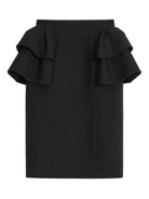 MIDI SKIRT IN BLACK VIRGIN WOOL AND SILK COUTURE CREPE. FEATURES A MID-RISE WAIST, BACK ZIP AND HOOK CLOSURE, RUCHING ON THE SIDES, AND A BACK SLIT. LINED WITH HABOTAI. REGULAR FIT.