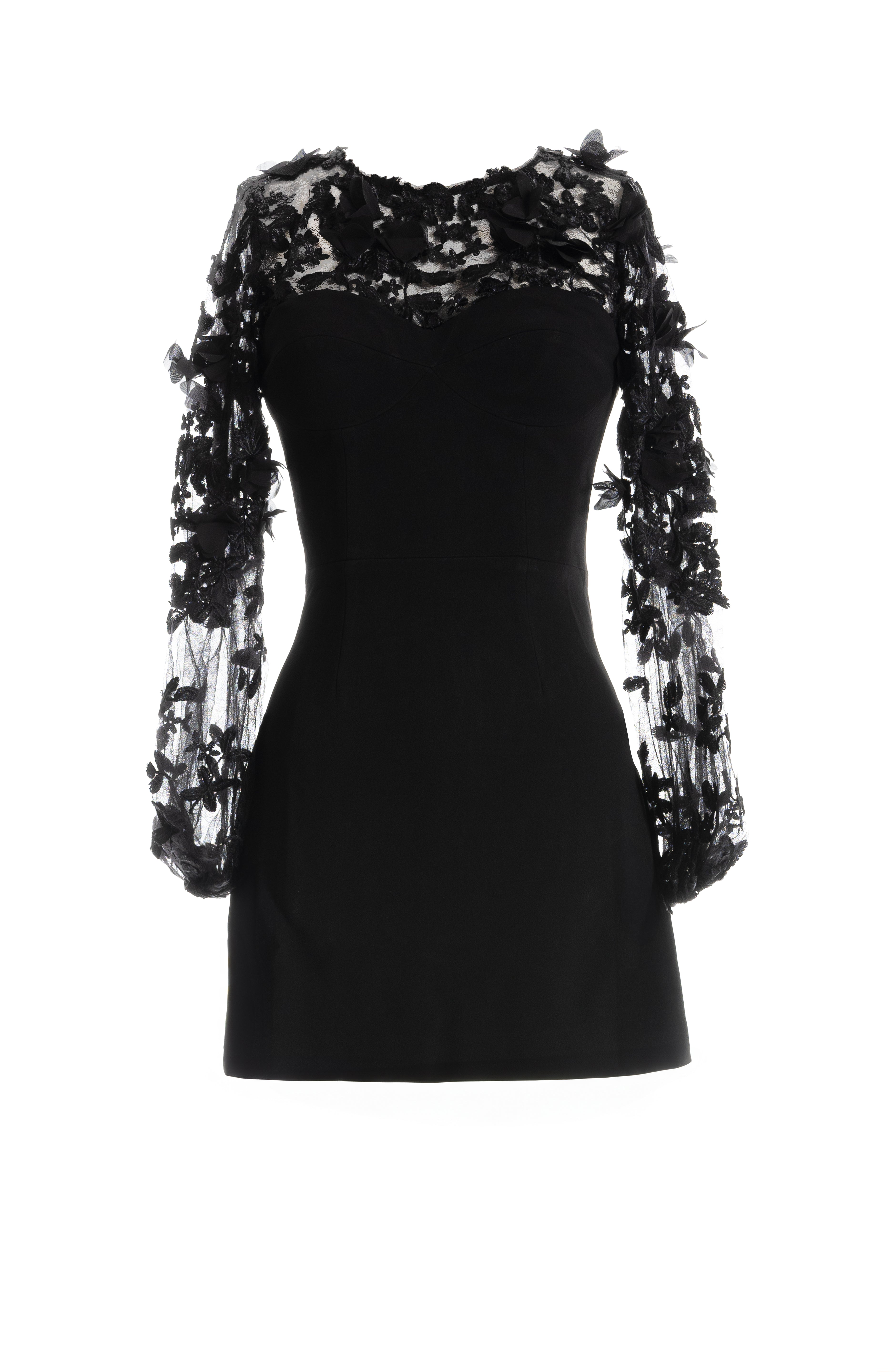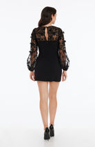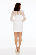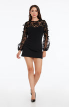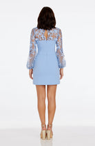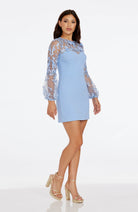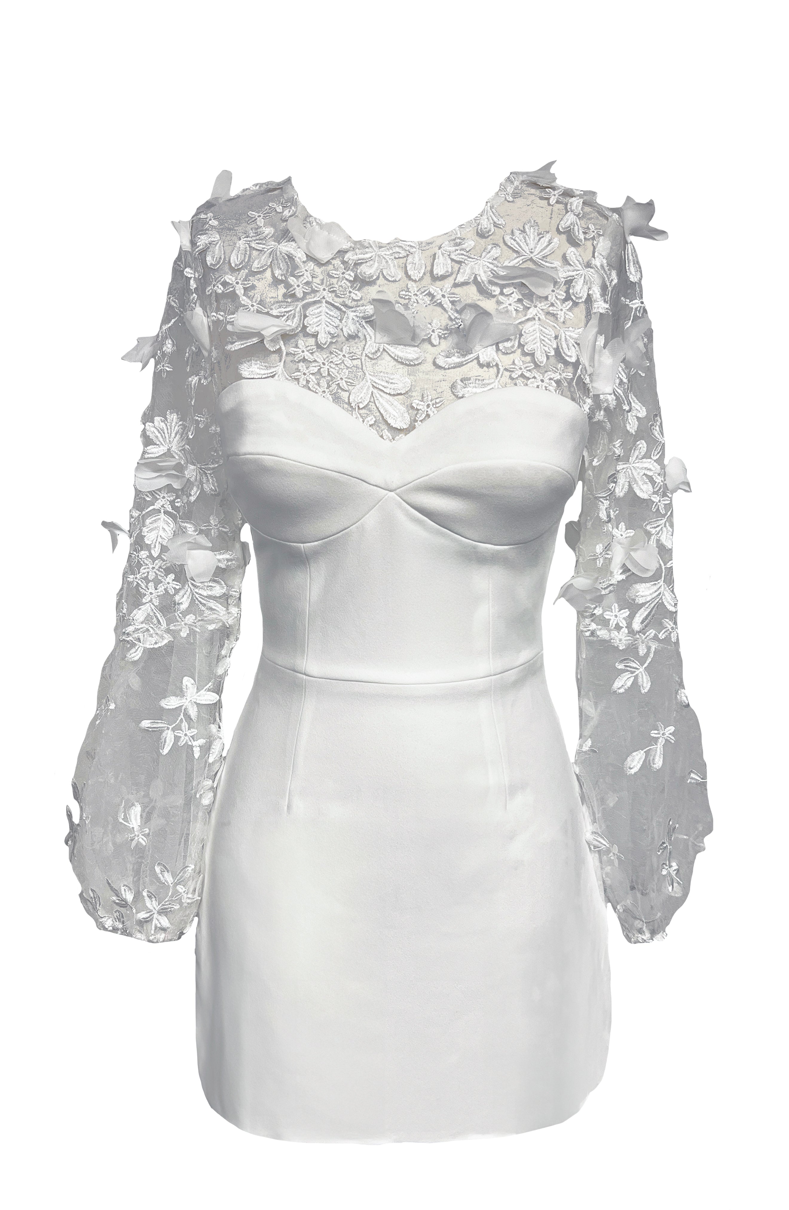 This A-Line Mini Dress features a Long Bishop Sleeve Illusion Sweetheart style for a stunning look.