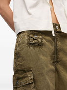 Perfect for off-duty styling, pair them with a simple tee and sneakers for an effortlessly cool look, or dress them up with a blouse and boots for a more polished casual ensemble. The rich military green hue adds an earthy, utilitarian edge to any outfit.
