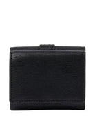 Introducing the Mini Black Paddington Trifold Leather Wallet by Chloé, a sophisticated accessory that combines timeless elegance with practical functionality. This luxurious black leather wallet features the iconic Paddington hardware detail, adding a signature touch to your everyday essentials. Designed with organization in mind, it includes a convenient front coin pocket with flap closure, one bill compartment, and three card slots to keep your cards secure and accessible. The snap-button closure ensures everything stays safely in place while maintaining the wallet's sleek silhouette. Perfect for the modern woman who appreciates refined craftsmanship and understated luxury, this compact trifold design slips effortlessly into any handbag while keeping you impeccably organized. Elevate your accessory collection with this essential piece from Chloé.