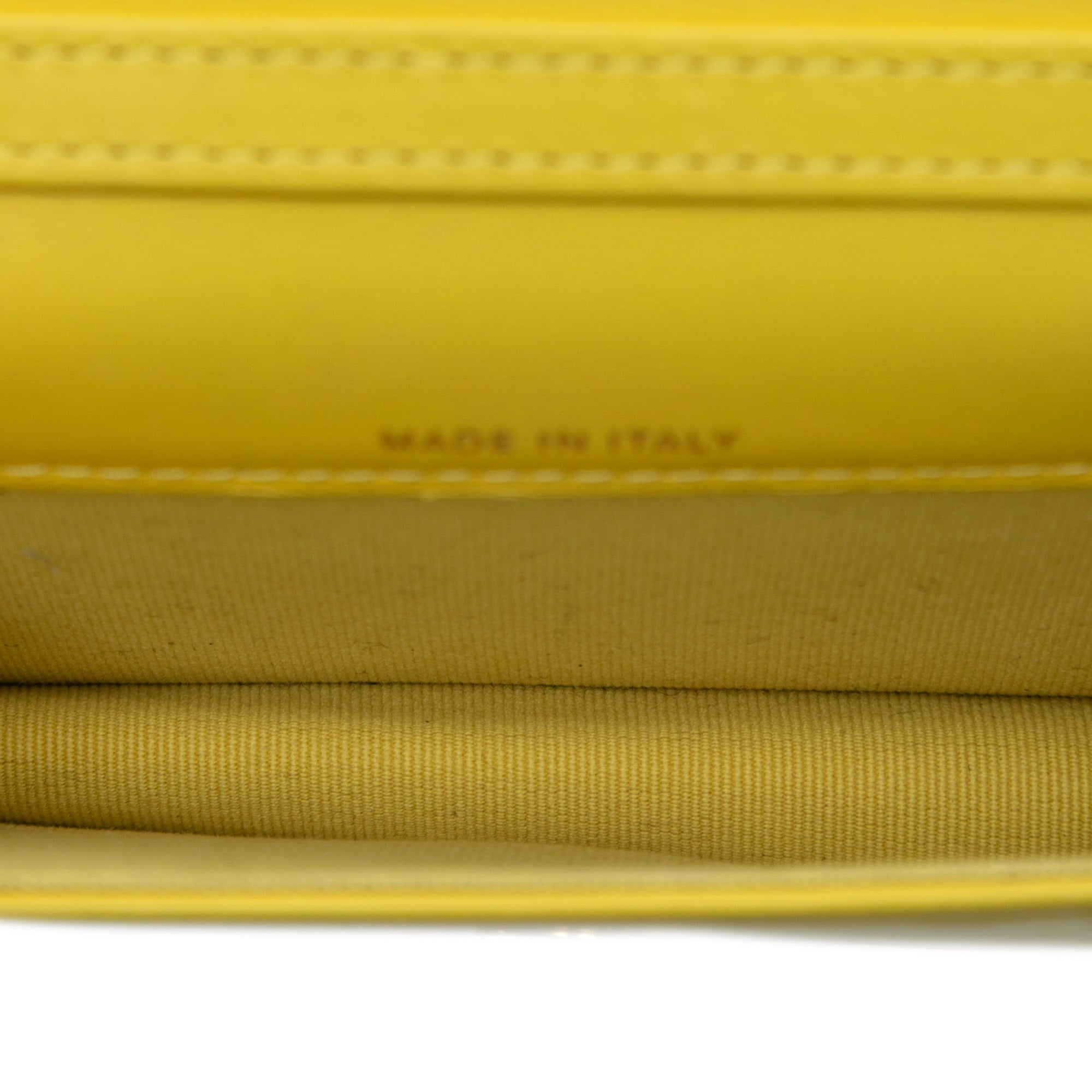 This crossbody bag features a quilted lambskin leather body, chain link strap with charms, and front flap with magnetic snap closure.
