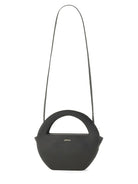 This distinctive handbag features a unique circular silhouette with a sculptural top handle, crafted from 100% premium leather in Italy. The minimalist design and structured shape make it a versatile accessory that effortlessly transitions from day to night.