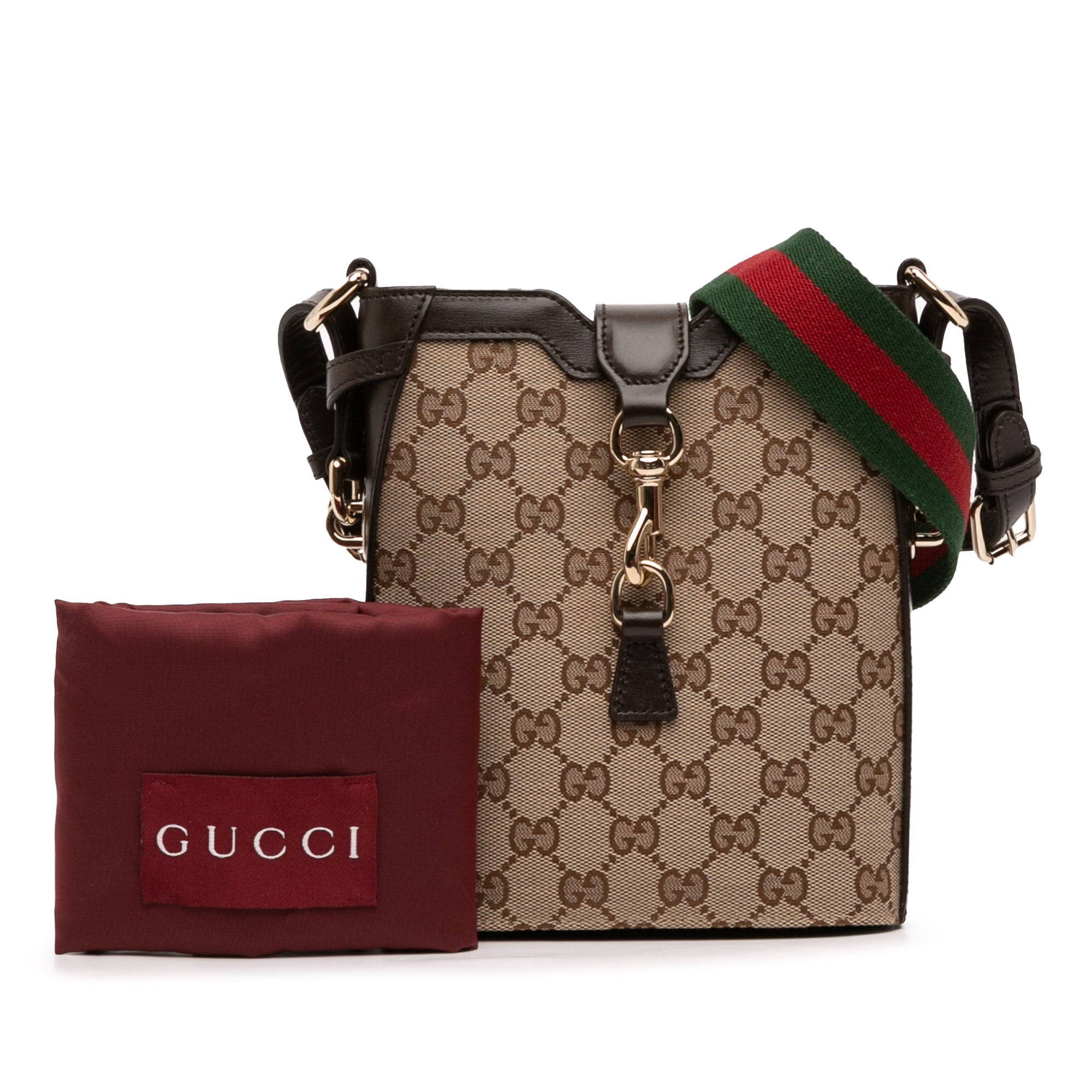 This Gucci Mini GG Canvas Web Bucket Bag is an iconic accessory that brings timeless luxury to your everyday wardrobe. Crafted from signature GG canvas with refined leather trim, this compact bucket bag features the brand's instantly recognizable green and red web strap that adds a heritage touch to any outfit.