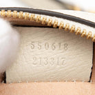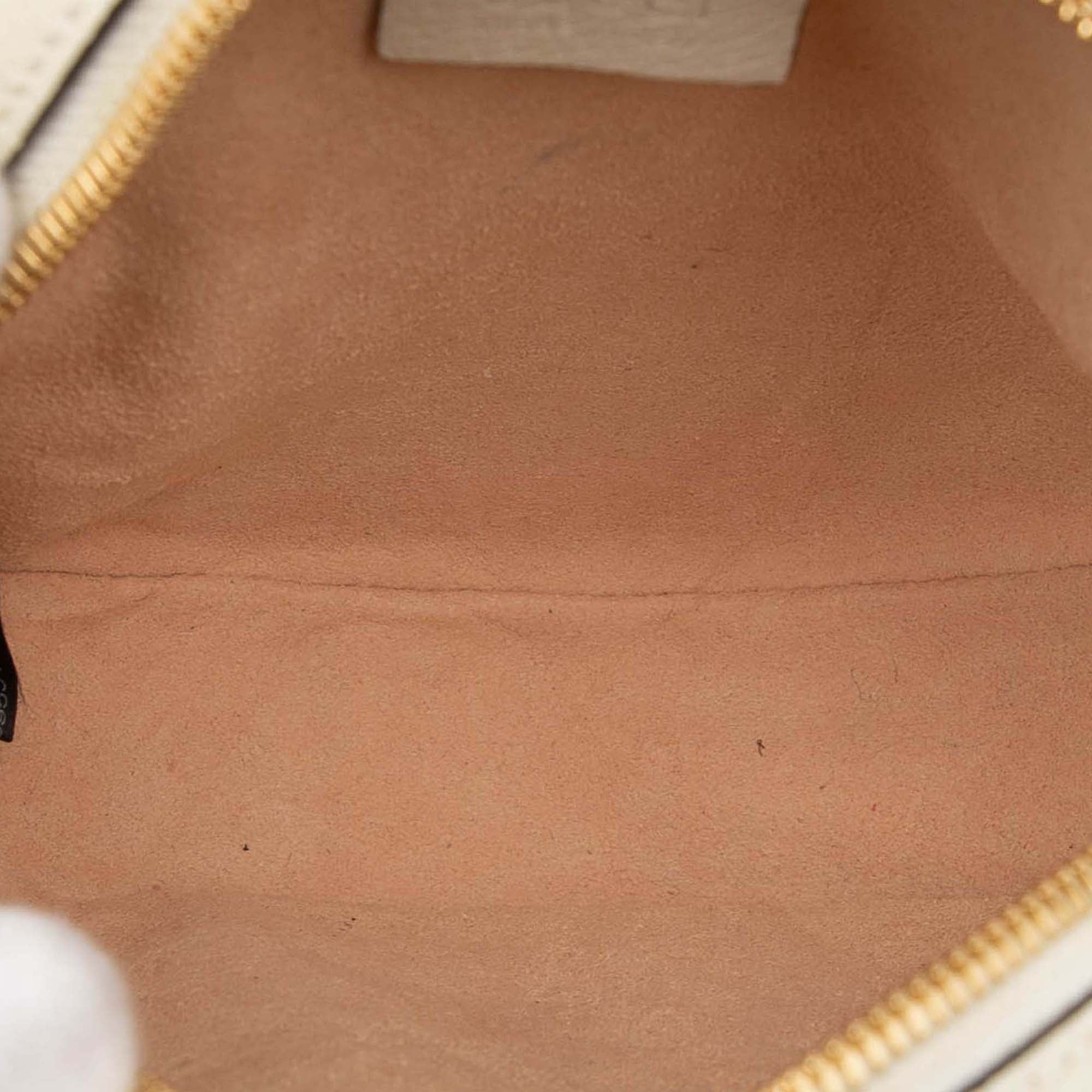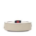 The Mini Round Ophidia crossbody bag features a leather body, a gold toned chain strap with, and a top zip closure.