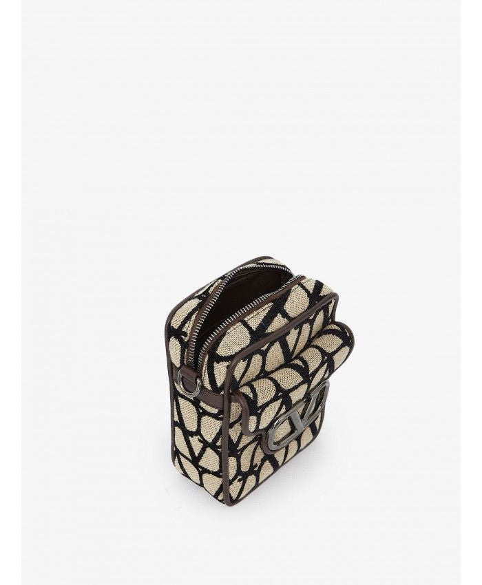 VALENTINO GARAVANI MINI LOCò SHOULDER BAG IN BEIGE AND BLACK TOILE ICONOGRAPHE. IT FEATURES SILVER-TONE METAL VLOGO DETAIL ON THE FRONT, ADJUSTABLE AND DETACHABLE SHOULDER STRAP, ONE FRONT PRESS-STUD FLAP POCKET, ZIP CLOSURE AND ONE MAIN INTERIOR COMPARTMENT.