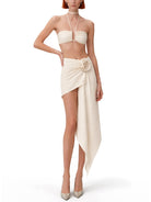 Make a statement in this stunning Mini Skirt with Drape from Magda Butrym. This sophisticated piece features an elegant draped detail with a rosette accent at the hip, creating a sculptural silhouette that's both modern and feminine.