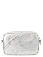 Elevate your everyday style with the 'Mini Star' Crossbody Bag from Golden Goose. This chic compact bag features a luxurious wrinkled-effect patent leather finish in a stunning metallic silver tone, complete with an iconic star appliqué that adds signature Golden Goose flair.