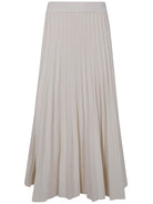 This elegant Blugirl mix viscose knit skirt features beautiful pleated detailing that creates graceful movement and texture. The maxi length and neutral tone make it a versatile wardrobe staple that can be dressed up for the office or styled casually for weekend wear.