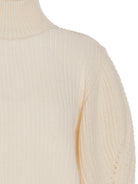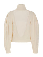 Introducing the 'Monique' sweater by MIXIK, a sophisticated wool turtleneck that redefines contemporary knitwear. This luxurious pullover features elegant long cuffed sleeves and an unexpected bare back with artful cut-outs, creating a stunning contrast between classic and modern design.