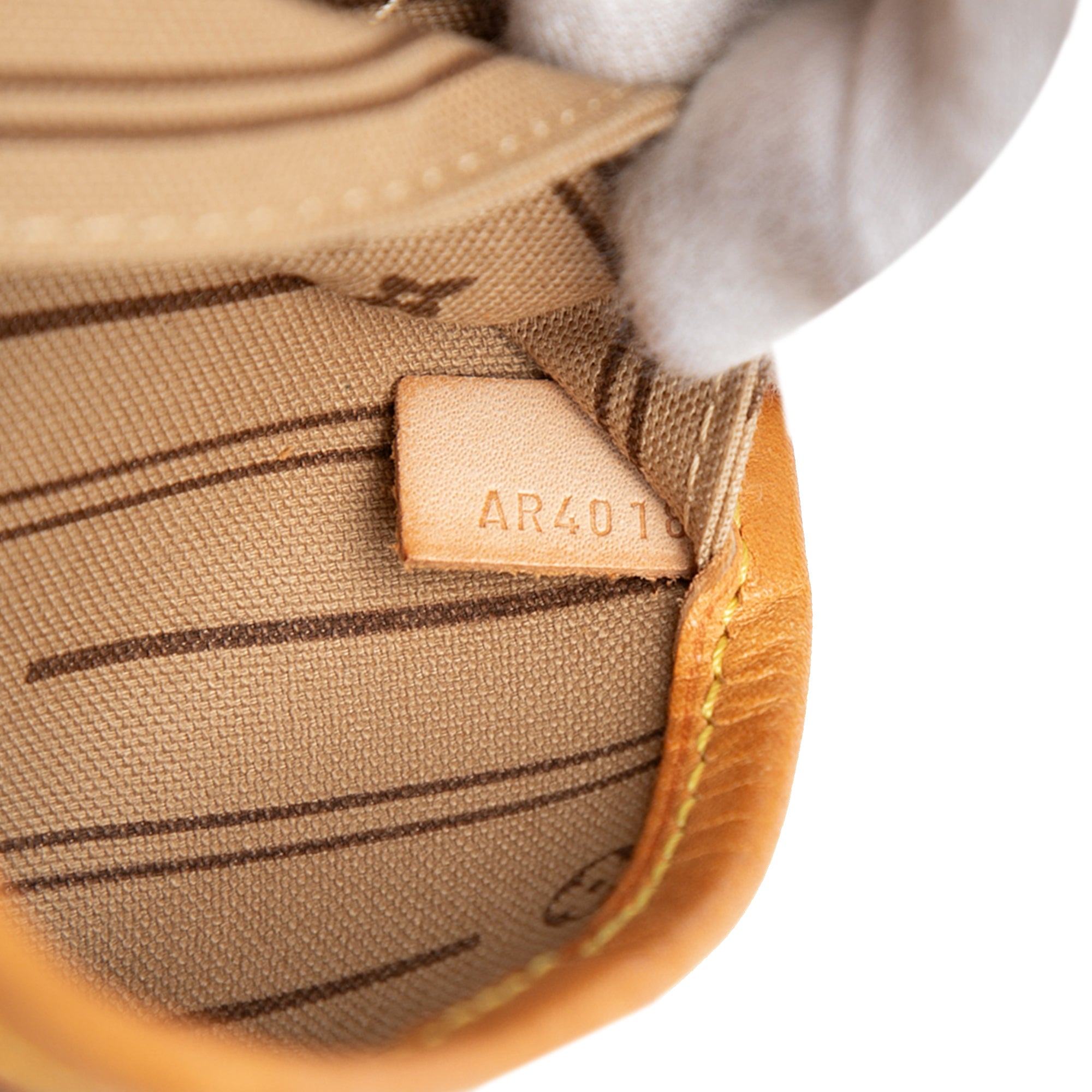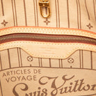 The Neverfull MM features a monogram canvas body with vachetta leather trim, a flat vachetta leather handles, an open top with lobster clasp closure, and an interior zip pocket.